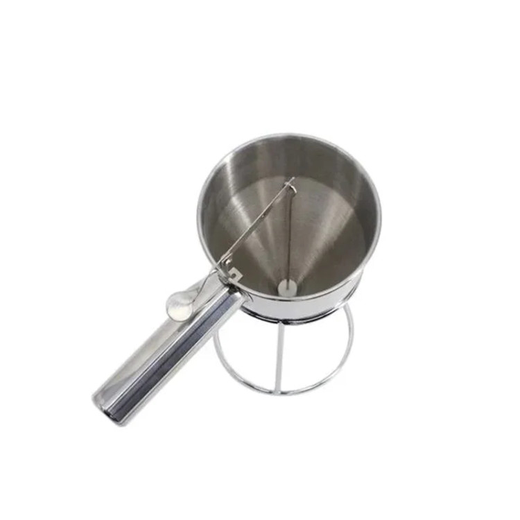 معرفی قیف پارافین ریز از جنس استنلس استیل: ابزاری ضروری برای ریختن موم ذوب شده است، این قیف استیل ضامن دار پارافین ریز از فولاد ضد زنگ با کیفیت بالا ساخته شده است تا در برابر گرمای موم ذوب شده مقاومت کند و تجربه ریختن صاف و کنترل شده را ارائه دهد.